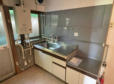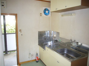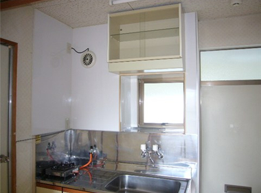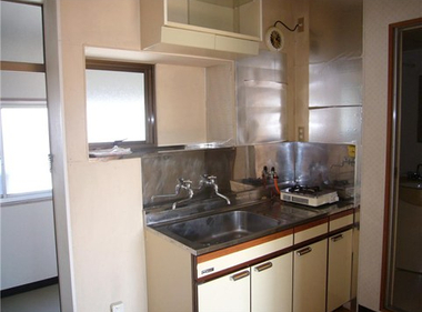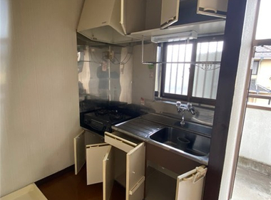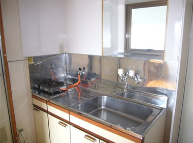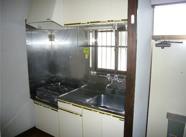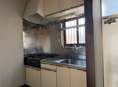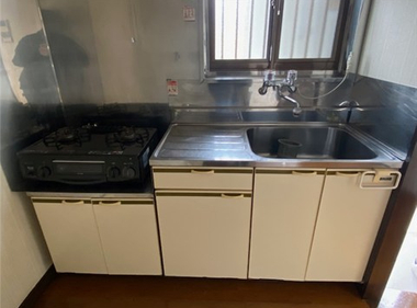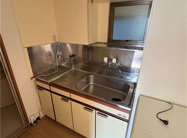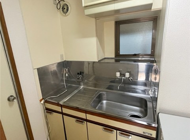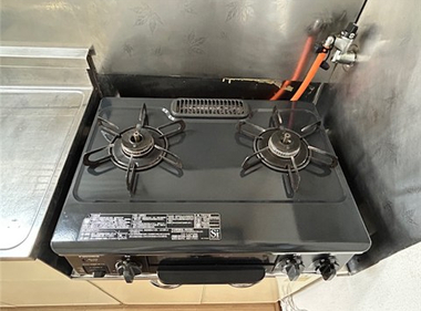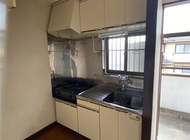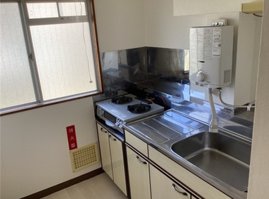 南向きで日当たり良好。2口コンロも置けて自炊もしっかりできますね。