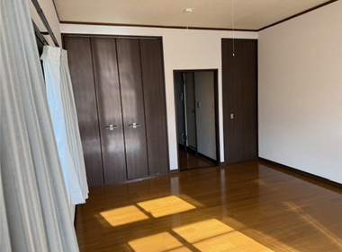 10帖のフローリングと天井の高い居室が開放感いっぱい。収納も充実です。 1年限定のお住まいです。