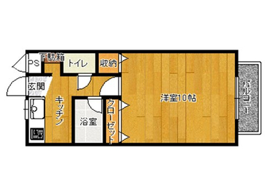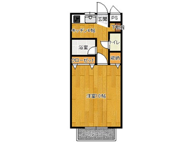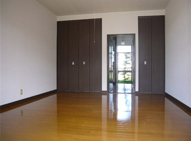 10帖のフローリングと天井の高い居室が開放感いっぱい。収納も充実です。インターネットも無料でご利用いただけます。
